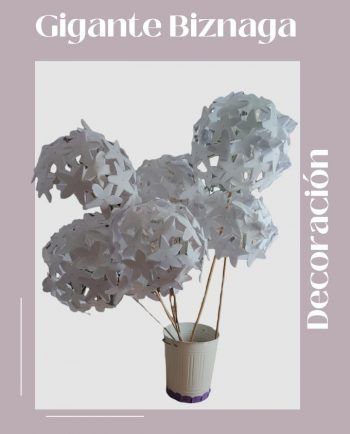 Adorno Biznaga Malagueña es una tradición en Málaga, como tradición es también encontrar en nuestra preciosa calle Larios a los típicos biznagueros (vendedores ambulantes) con sus pencas repletas de biznagas, confeccionadas con jazmines naturales insertados uno a uno en un tallo seco de nardos silvestres. Es una composición de jazmines cerrados que al atardecer comienzan a abrir e inundan el centro de Málaga con su característico olor. Es tal la importancia de la biznaga en nuestra ciudad que se ha convertido en el símbolo protagonista del festival de cine español. La pasión que despierta la biznaga ha hecho que se convierta en un indispensable recuerdo de nuestra ciudad por lo que los artesanos la reproducimos en porcelana fría elaborando jazmín a jazmín con mucha dedicación y cariño para luego montarlos formando una delicada biznaga. Al estar hecha a mano cada jazmín es distinto cada biznaga es diferente y cada artesano hace suya la biznaga que realiza. Si pasas por Málaga no dejes de adquirir una preciosa y delicada biznaga símbolo de nuestra ciudad