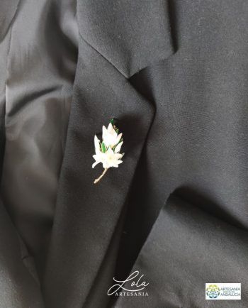 Complementos Biznaga Malagueña es una tradición en Málaga, como tradición es también encontrar en nuestra preciosa calle Larios a los típicos biznagueros (vendedores ambulantes) con sus pencas repletas de biznagas, confeccionadas con jazmines naturales insertados uno a uno en un tallo seco de nardos silvestres. Es una composición de jazmines cerrados que al atardecer comienzan a abrir e inundan el centro de Málaga con su característico olor. Es tal la importancia de la biznaga en nuestra ciudad que se ha convertido en el símbolo protagonista del festival de cine español. La pasión que despierta la biznaga ha hecho que se convierta en un indispensable recuerdo de nuestra ciudad por lo que los artesanos la reproducimos en porcelana fría elaborando jazmín a jazmín con mucha dedicación y cariño para luego montarlos formando una delicada biznaga. Al estar hecha a mano cada jazmín es distinto cada biznaga es diferente y cada artesano hace suya la biznaga que realiza. Si pasas por Málaga no dejes de adquirir una preciosa y delicada biznaga símbolo de nuestra ciudad
