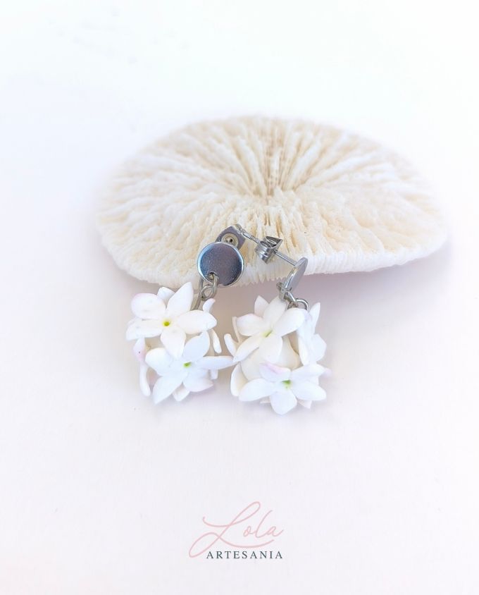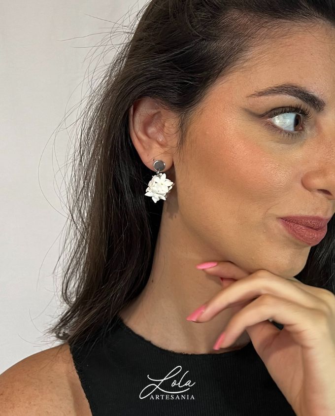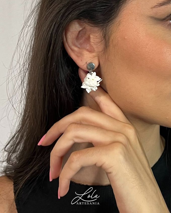 Pendientes Biznaga Malagueños realizados de forma artesanal. Modelando jazmín a jazmín en porcelana fría, para formar esta pequeña biznaga.