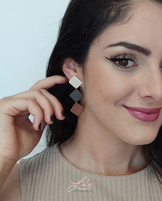 Elegantes y modernos pendientes realizados en arcilla polimérica y hechos artesanalmente. son muy ligeros de llevar y cómodos es el complemento perfecto para todo el día.